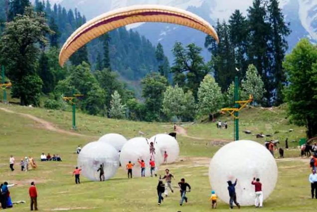 A mini valley located at about 8400 feet above sea level, Solang Nala is a short drive away from Manali. It is a haven for adventure and sports lovers and while here, you can try your skills on a pair of skis or go for a snowmobile exploration. When the weather warms up, people flock here for zorbing and paragliding. You can also hop onto a cable car and enjoy mesmerizing views of the Himalayas. If you are looking for snow-based activities and sports, winters are the best time to visit while the months of summer are ideal for other adventure sports.